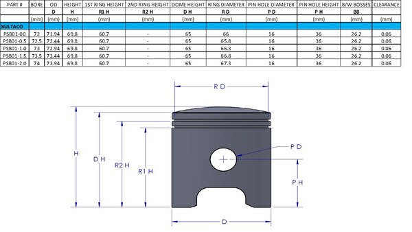 perfect for older bultacos you may have to drill two small holes on the exhaust side and shorten the skirt to match nice pistons