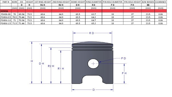 Pistons are the heart of your vintage 2-Stroke and VintCo high quality pistons will help you keep the ride going! These Pistons are made with modern materials and manufacturing techniques to ensure an as good or better than OEM fitment and performance. This Honda CR250 1978-80 or ATC250R 1981-84 Piston Kit 70mm (Standard Bore) includes the piston, rings, pin and clips to help you get back on track with ease. A wrist pin bearing is available separately and more size options are also available. The OEM part numbers are provided to ensure an exact fitment as well. A high quality VintCo piston kit is a great investment in your vintage motorcycle.
