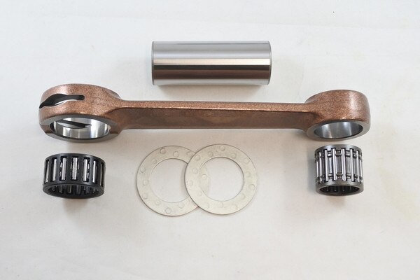 VintCo has all new Heavy Duty Connecting Rod kits for your Vintage KTM 420 and 495 dirt bikes that will get you back on track. These Connecting Rod kits will save you money over a new crankshaft. This connecting rod kit fits all KTM 1980-81 420 models and all KTM 1981 495 models. Connecting rod dimensions/measurements are all online with pictures. VintCo rod kits are manufactured with Heavy Duty Forged Steel and made with modern materials and manufacturing techniques to ensure an as good or better than OEM fitment and performance. Kit includes a rod, crank pin, big end bearing, wrist pin bearing, and two thrust washers. This newly manufactured connecting rod kit from VintCo will help you keep the ride going!
