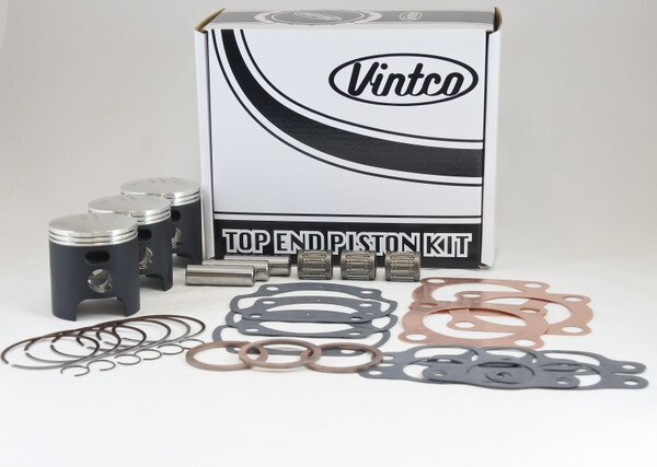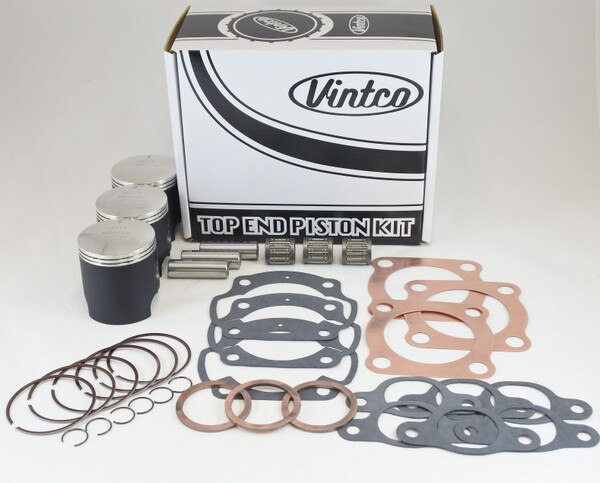 VintCo has all new Top End Piston kits to help you keep the ride going! These complete top end kits come with everything you need to get your rebuild done easily and cost effectively. This kit includes three high quality VintCo Piston kits (piston, rings, pin and clips), top end bearings and a full top-end gasket kit (head gasket, base gasket, intake gaskets, and exhaust gaskets for entire top end). All components are made with modern materials and manufacturing techniques to ensure an as good or better than OEM fitment and performance. This Kawasaki H1-500 1969-73 Top End Piston Kit 60.5mm (+0.5mm over), will save you 10% compared to buying the pieces individually. The OEM part numbers are provided to ensure an exact fitment as well. More size options are also available.