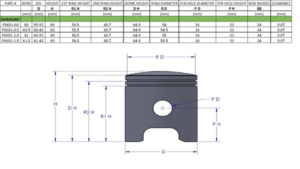 - Kawasaki H1-500 1974-75 KH500 1976 Top End Piston Kit 61.5mm 1.5mm Over
