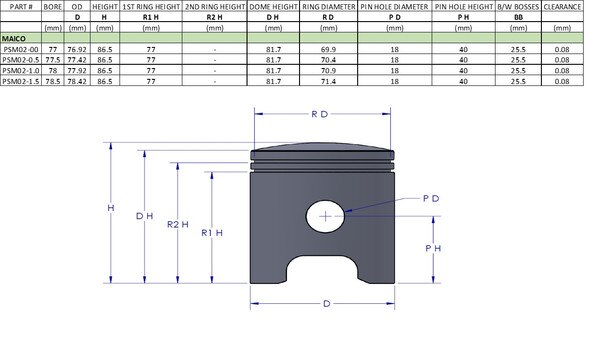 - Maico 400 1974-81 Piston Kit 77.0mm Standard