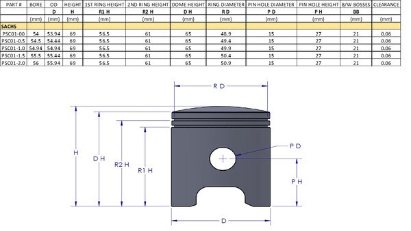 Penton Monark Hercules DKW/125cc Sachs 6 Speed 1972-76 Piston Kit 55.5mm 1.5mm Over