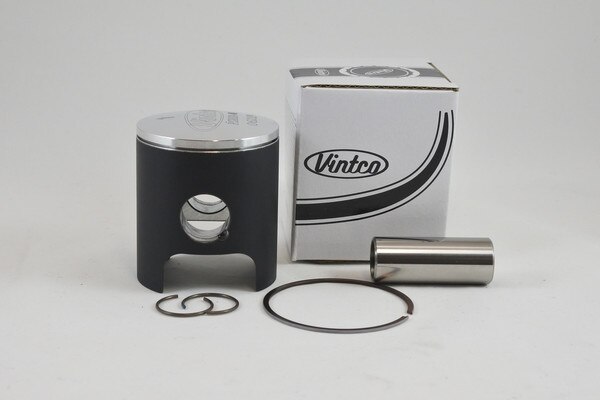 Pistons are the heart of your vintage 2-Stroke and VintCo high quality pistons will help you keep the ride going! These Pistons are made with modern materials and manufacturing techniques to ensure an as good or better than OEM fitment and performance. This Rotax/Can Am 125cc TnT MX Qualifier Fun SWM Piston Kit 54mm (Standard Bore) includes the piston, rings, pin and clips to help you get back on track with ease. A wrist pin bearing is available separately and more size options are also available. A high quality VintCo piston kit is a great investment in your vintage motorcycle.