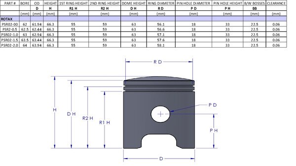 - Rotax/Can Am 175cc TnT MX Qualifier SWM Piston Kit 62.5mm 0.5mm Over