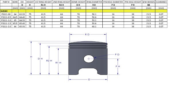 Suzuki DS185 1978-80 TC185 1974-77 TS185 1971-81 Piston Kit 64.0mm Standard