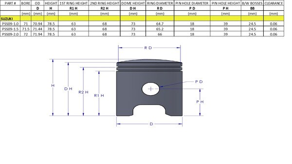 Suzuki RL250 1974-75 DS250 1980 TS250 1973-81 Piston Kit 71.0mm 1.0mm Over