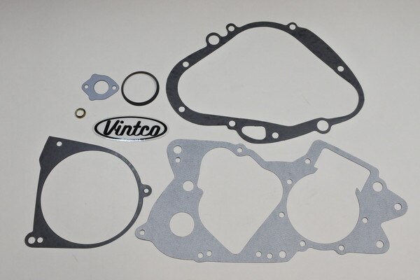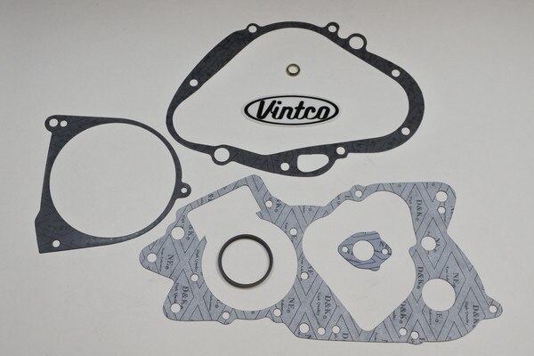 VintCo has all new engine gasket kits to help on your engine lower end rebuild. These gaskets are made with modern materials and manufacturing techniques to ensure an as good or better than OEM fitment and performance. The OEM part numbers are provided as a reference to ensure exact fitment. This kit fits all Suzuki 1976 RM100, 1975 RM125, 1972-77 TC125, 1971-77 TS125, 1974-75 TM100 and 1973-75 TM125 models. This engine gasket kit includes the Crankcase gasket, clutch cover gasket, magneto cover gasket, oil pump gasket, drain plug gasket and exhaust gasket to complete your build with ease. These newly manufactured gaskets from VintCo will help you keep the ride going!