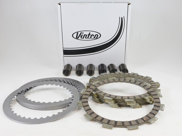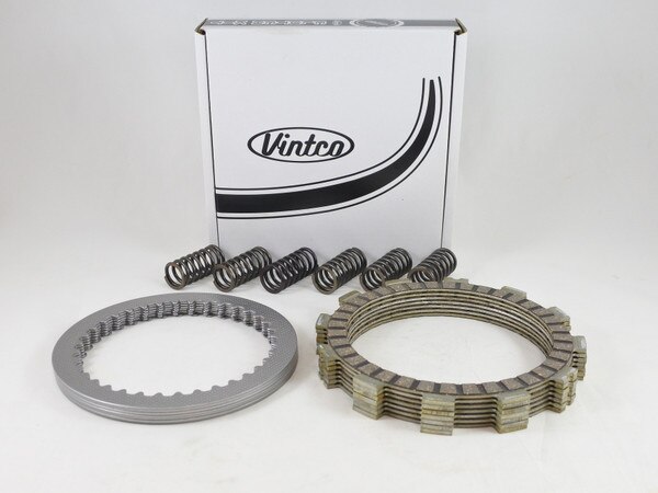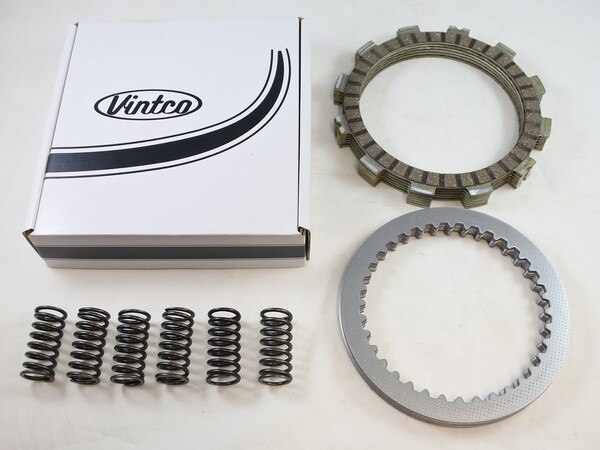 VintCo has all new Clutch plate kits for your Vintage Suzuki Dirt Bike that will get you back on track. These Clutch kits will save you time and money as they come complete with steel and friction plates as well as the springs to complete the job with ease. The VintCo Clutch kits are made with modern materials and manufacturing techniques to ensure an as good or better than OEM fitment and performance. Our clutch cork friction plates are infused with aluminum particles designed to ensure smooth power delivery and fade-free performance. VintCo steel clutch plates won't expand and do not fade like aluminum clutch plates. The clutch springs are heat treated for maximum life. The OEM part numbers are provided as a reference to ensure exact fitment. This is an OEM quality drop-in clutch plate kit that fits all Suzuki 1972-77 TS400, 1976-77 GT500 and 1971-75 T500 models. This newly manufactured Clutch kit from VintCo will help you keep the ride going!